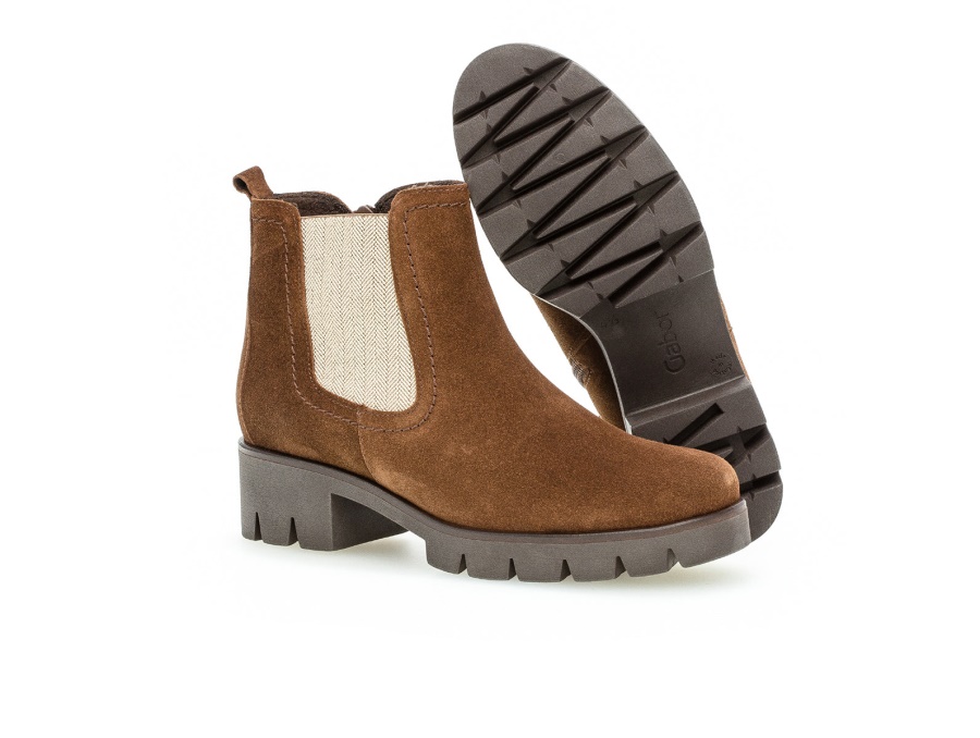 The Gabor 71.710.18 boots in whiskey are perfect for day to day wear. A zip fasten gives the boots easier on/off and keeps feet secure throughout the day, with an elasticated gusset and pull tab allowing for easy on & off. A cleated sole provides grip. These boots feature removable insoles which are ideal if custom orthotics are required. A 5cm block heel adds a touch of height. Here at Gabor Shoes Ireland we think these would look great with black tights and a knitted jumper dress. Upper Material: Suede Leather Lining Material: Textile Sole Material: Manmade Removable insoles: Yes Width: Standard Heel Height: 5cm